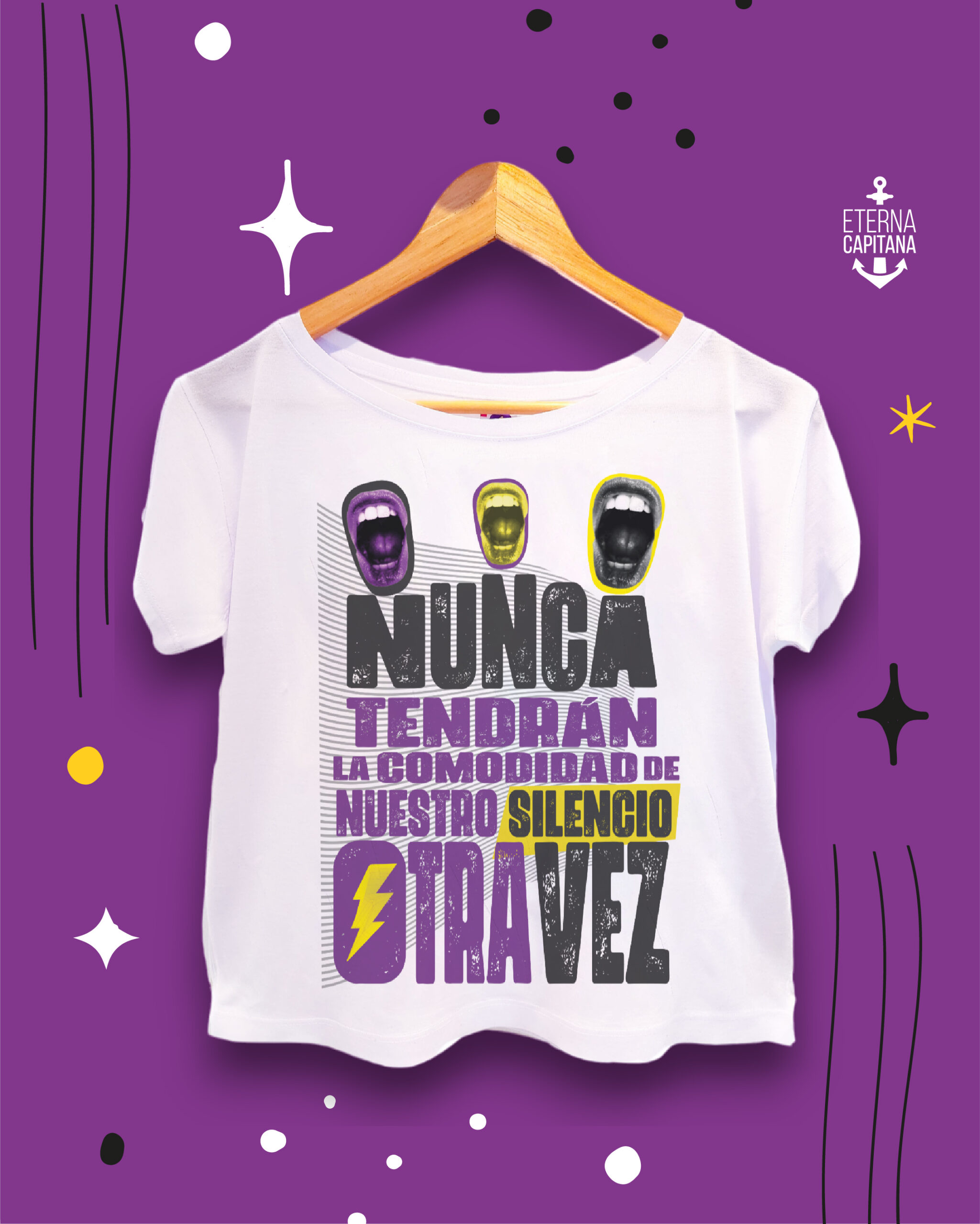 Diseñamos estampas textiles peronistas, feministas y de Rock Nacional sobre distintos soportes (serigrafía, vinilo textil y sublimación).